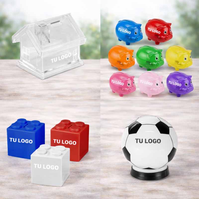 Alcancías personalizables con tu logo o marca en diferentes modelos y estilos.